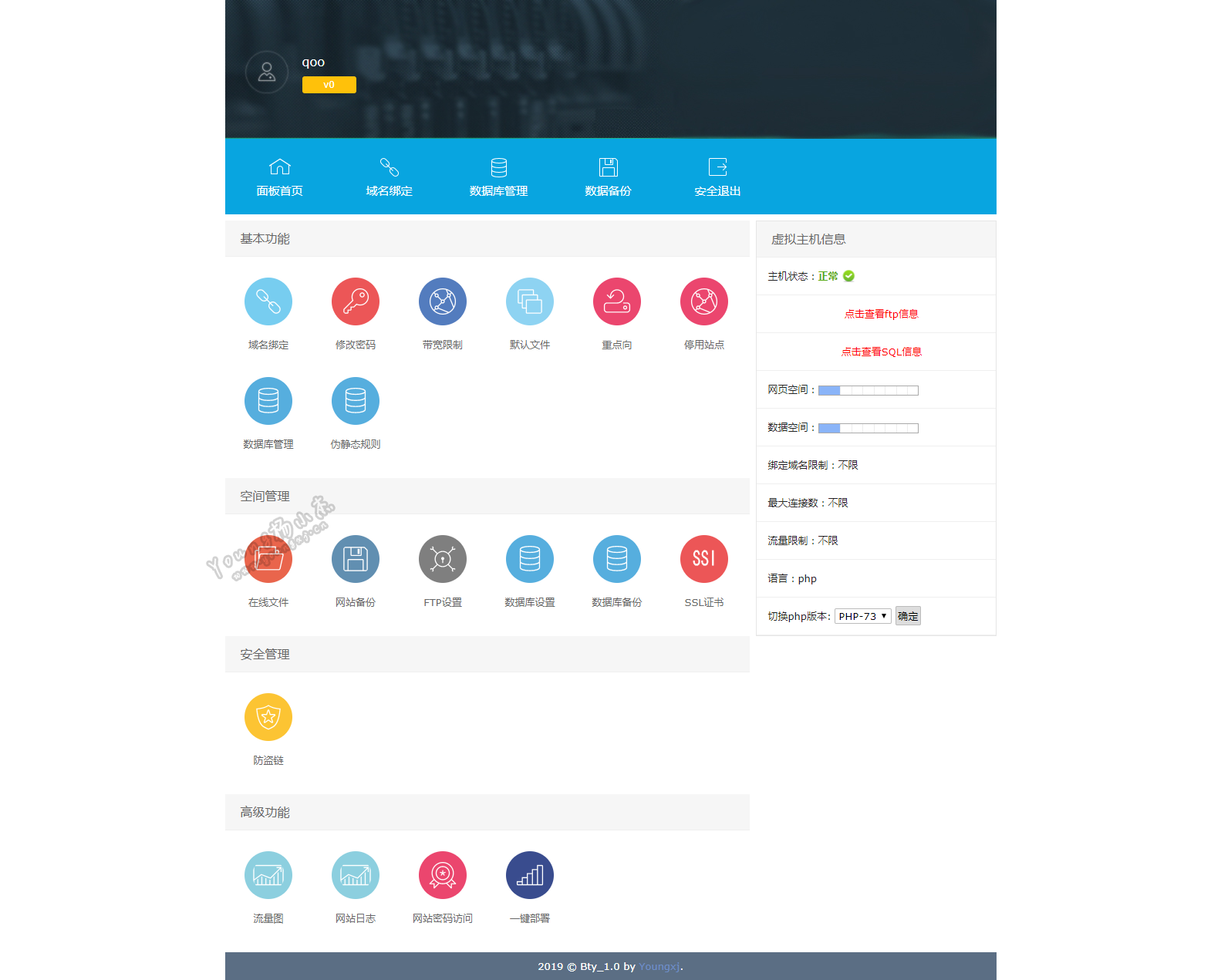 宝塔API出来第三天开始着手系统制作,由于第一次使用thinkphp5所以制作起来十分的生疏,代码也十分的凌乱,耗时一个月总算是基本写完了。